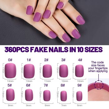 LEOBRO Press on Nails Short, 15 Pack 360PCS Matte Acrylic Fake Nails Square Short, Small Squoval False Nails Set, with Nail Glue & Nail Files, 15 Colors Stick Glue on Nails for Women, Small Nail Tips
