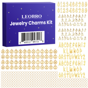 LEOBRO Gold Charms for Jewelry Making, 376 Pcs Letter Charms, Bracelet Charms, Necklace Charms, 6 Sets Gold Letter Charms with Number Charms and Jump Rings for Jewelry Making, Gold