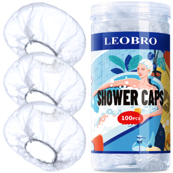 LEOBRO Shower Caps, 100PCS Disposable Shower Caps, Shower Cap for Women Waterproof, Disposable Clear Plastic Shower Cap for Women, Thick Plastic Caps for Hair Treatment, Regular Size 17.3 INCH